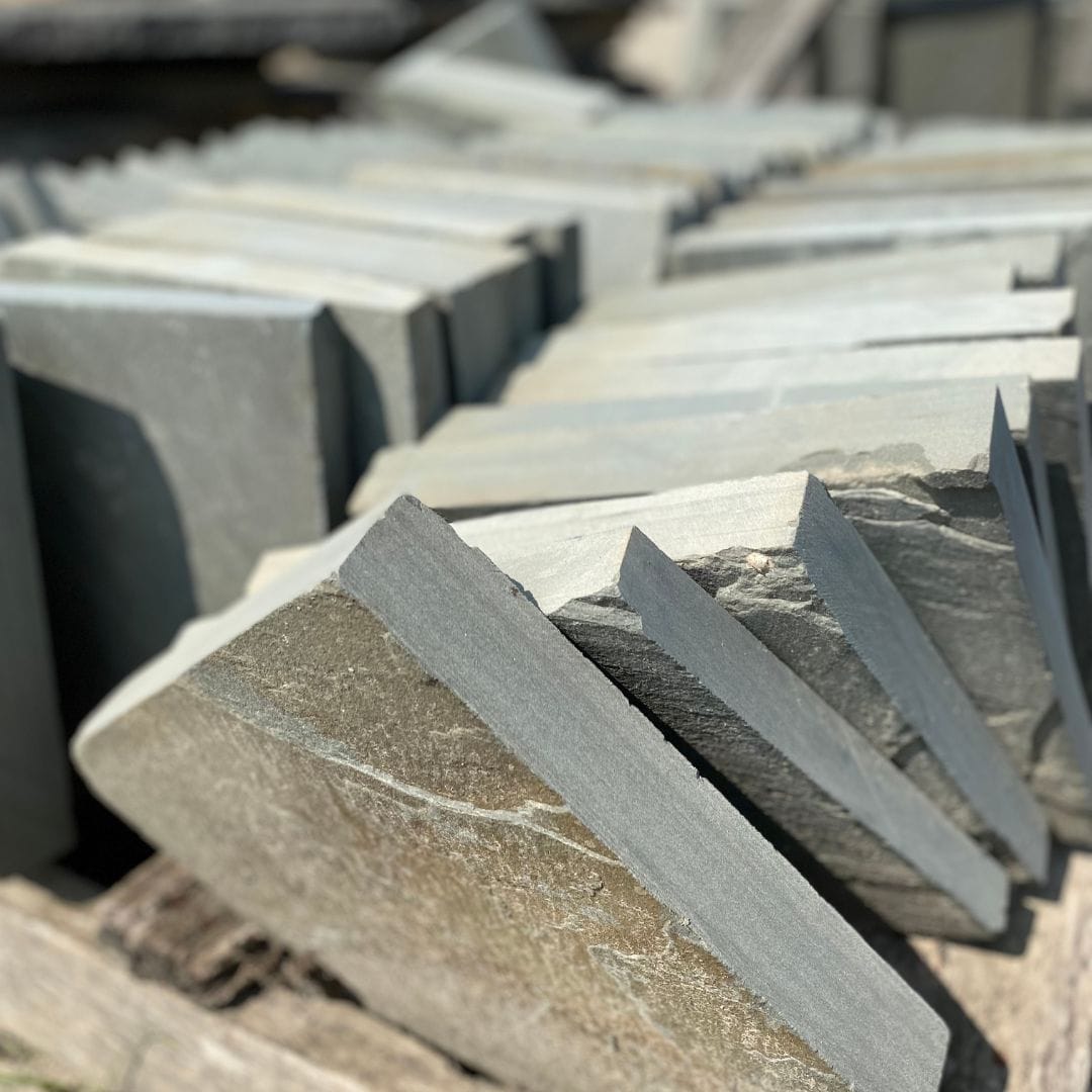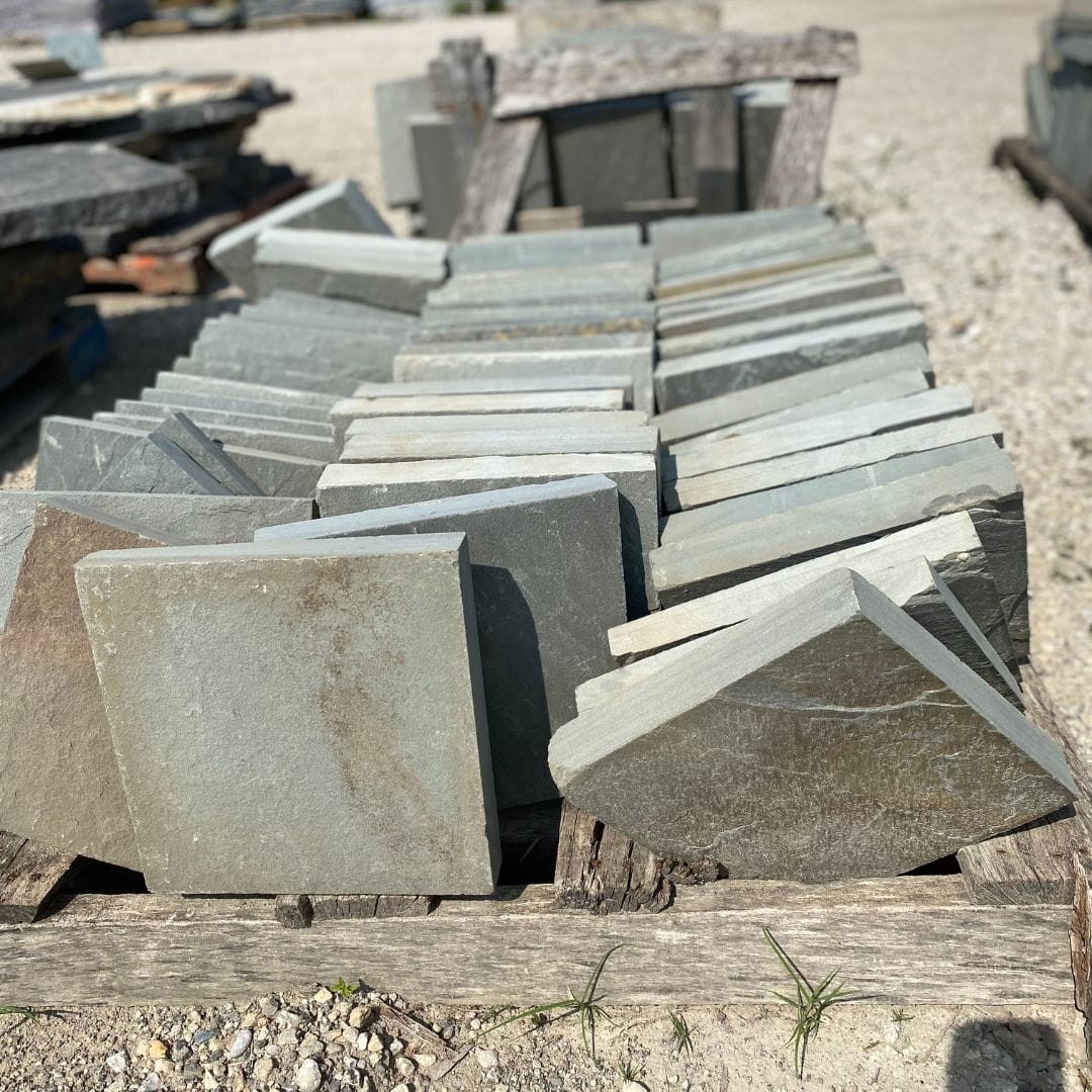 Just as the name entails, the stone is true blue colored bluestone. The natural clef is available in several sizes that are machine cut for clean, smooth edges and easy installation. Use as steps for formal pathways in landscape applications.