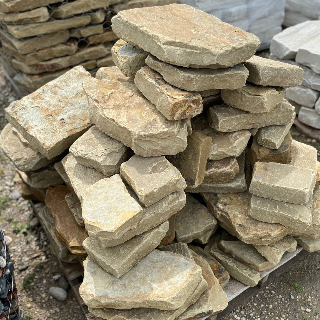 Light tan to brown-mocha colored edging with silvery highlights to add the finishing touch to any garden space. Use this natural looking, tumbled edging to naturalize garden spaces and provide definition around flower beds.