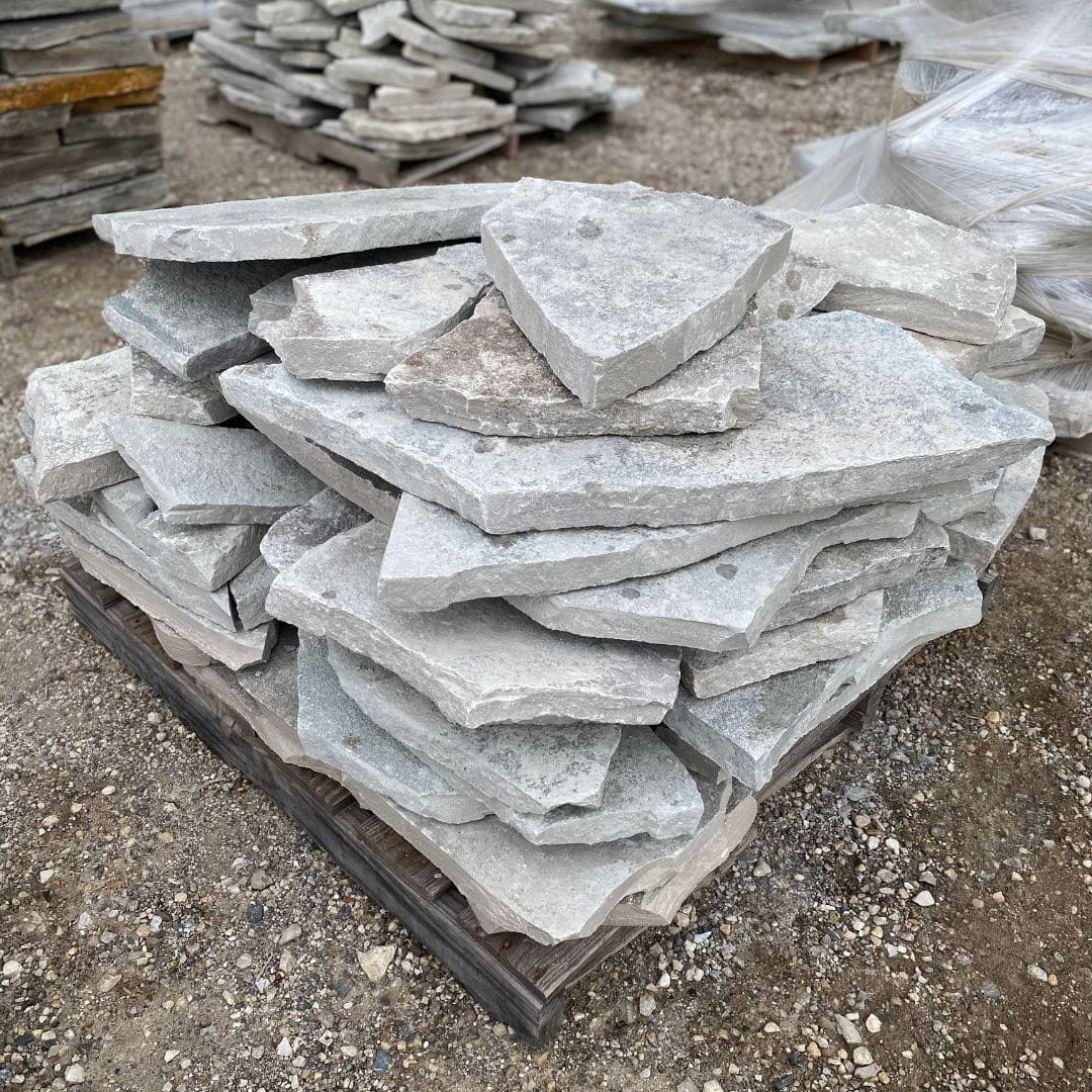 Stone comes in matte gray tones, used for informal pathways through gardens and mulch beds.