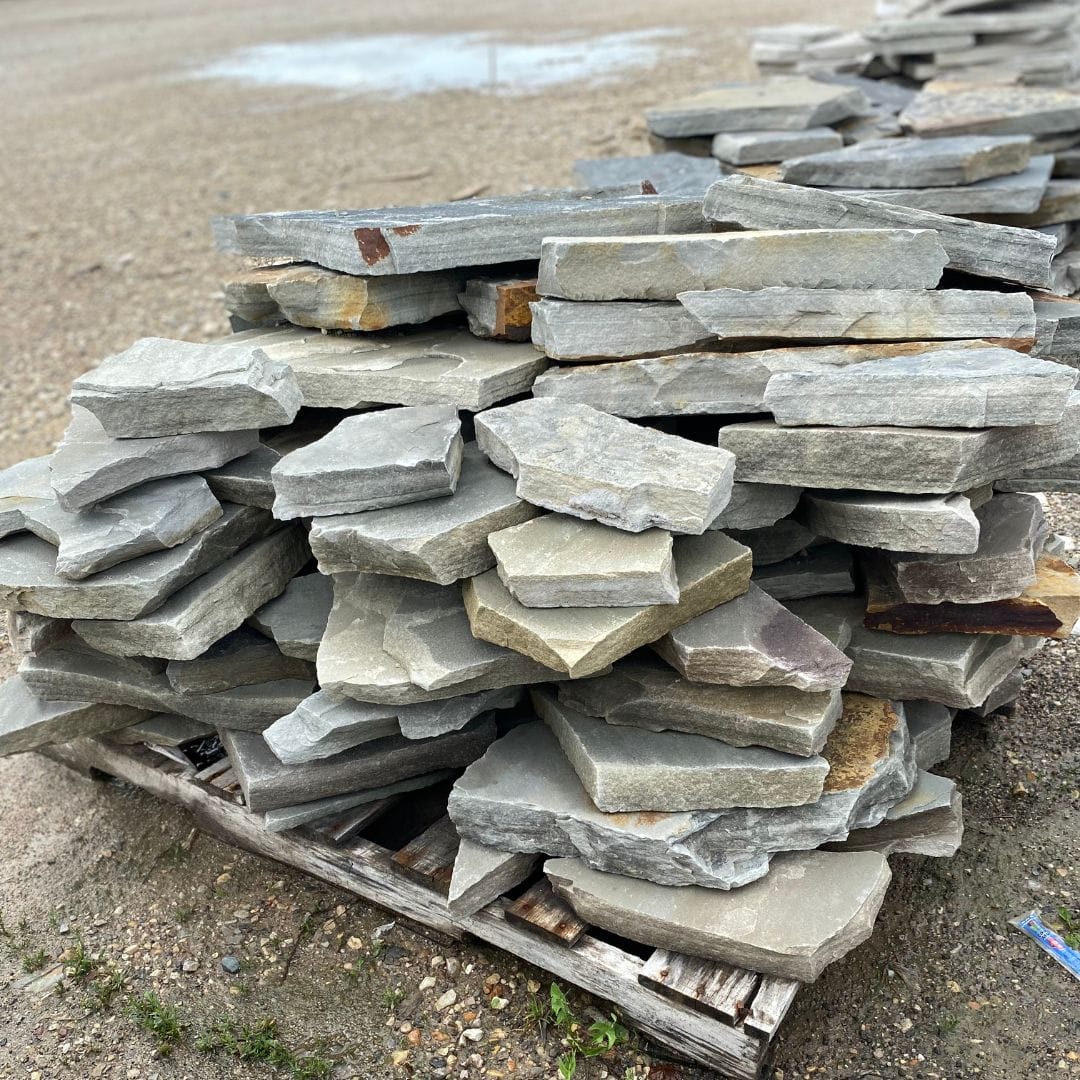 The color consists of warm light gray and some brown hues. Design possibilities are endless; applications of Summit Gray Flagstone include durable garden walkways or exterior patio pavers. Average coverage per ton of flagstone is about 80 sqft.
